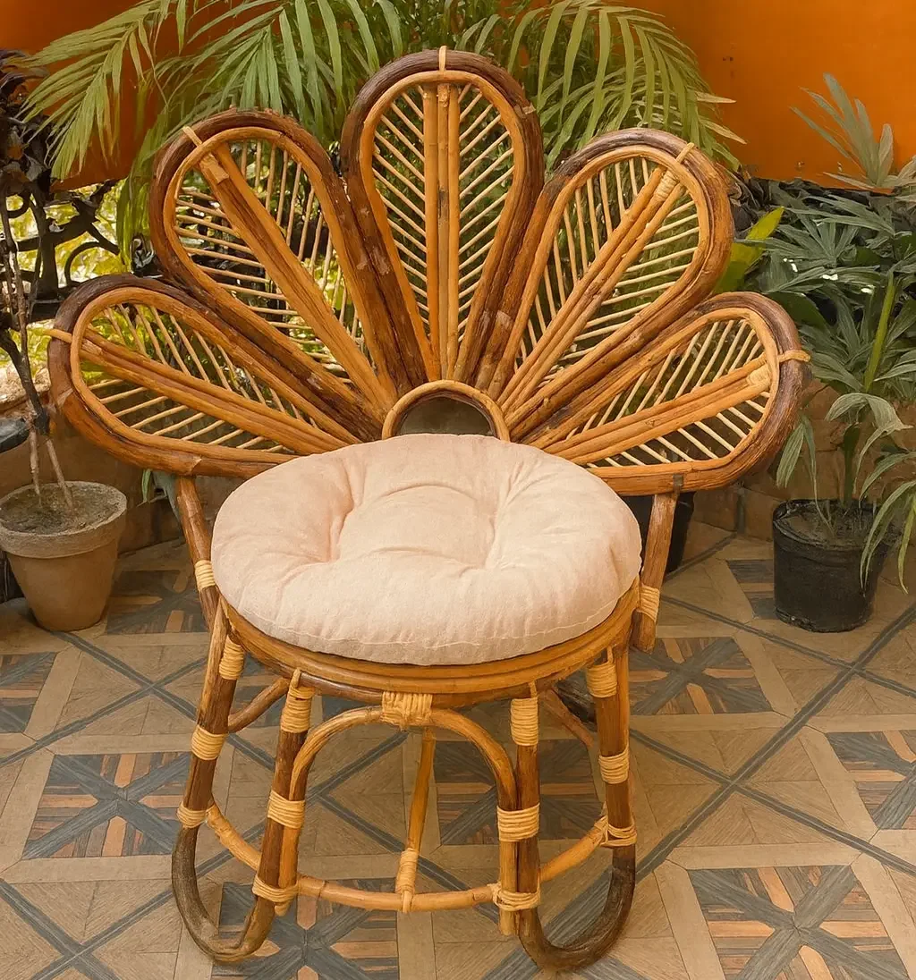 Design: Artistic petal-shaped backrest with woven seat